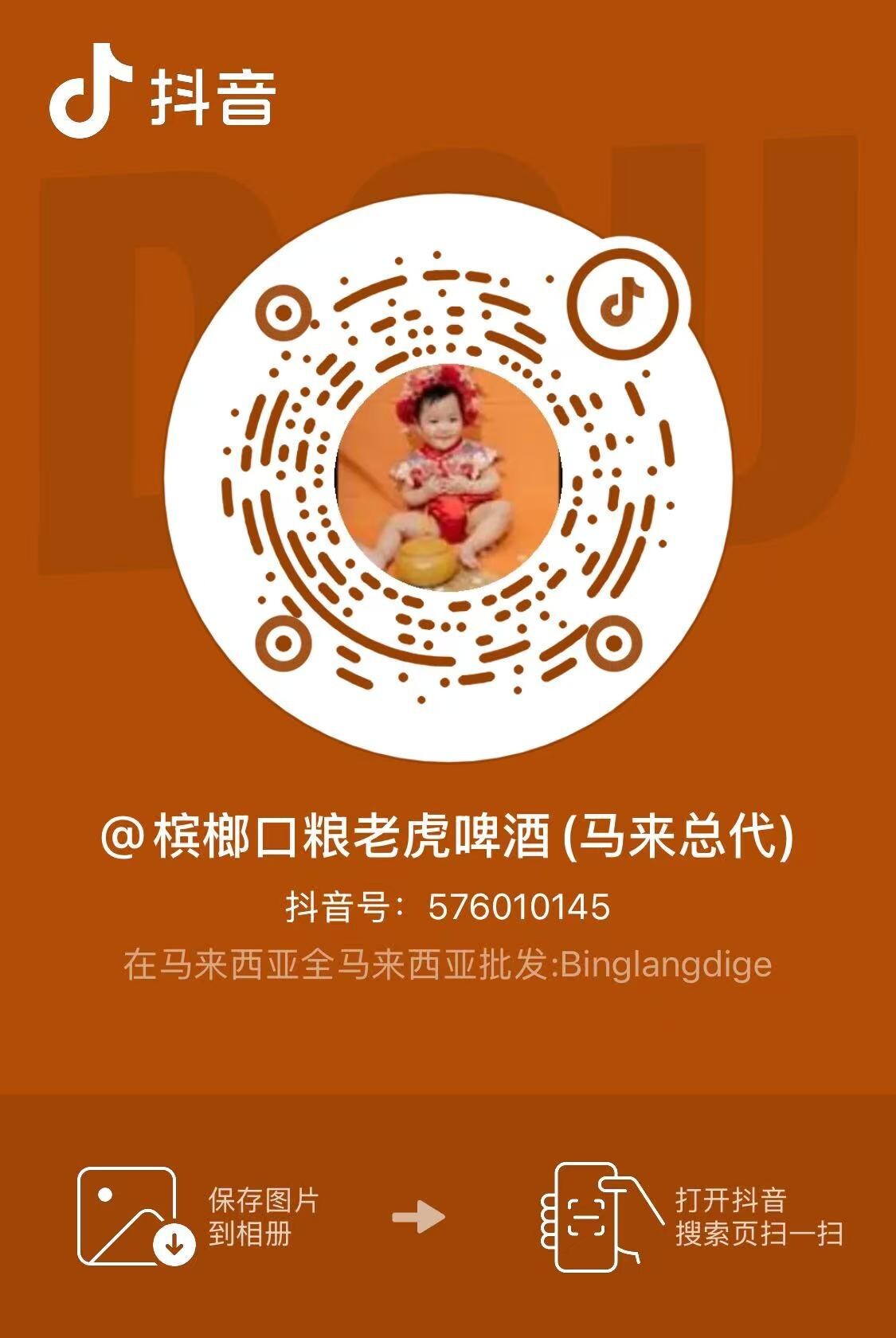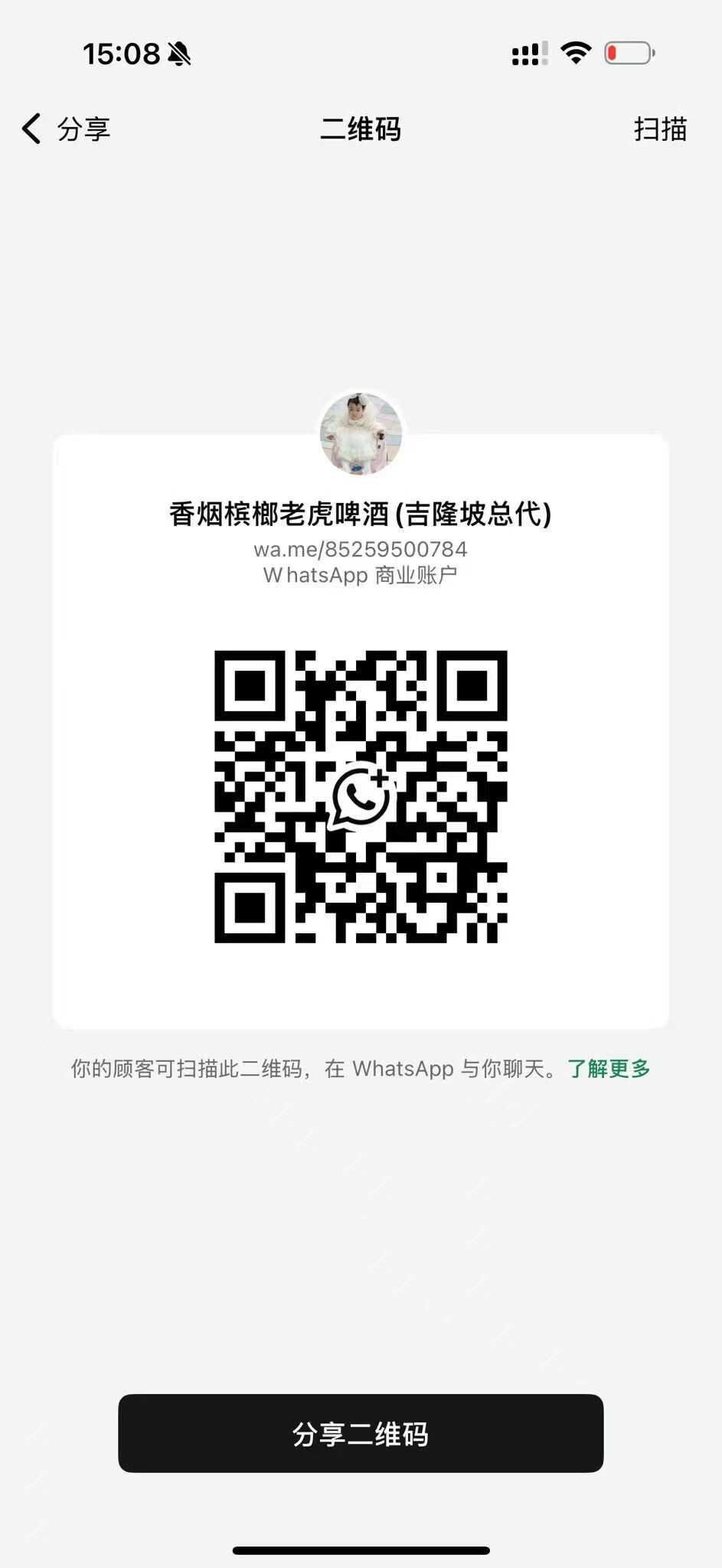 @所有人群里兄弟,姐妹,我这里有个在马来西亚全城配送,做批发跟零售的商家,保真口粮。槟榔,老虎,青岛啤酒整箱出,这个是他的名片,给你你们分享下,需要的可以加他WhtasApp联系:+852 59500784